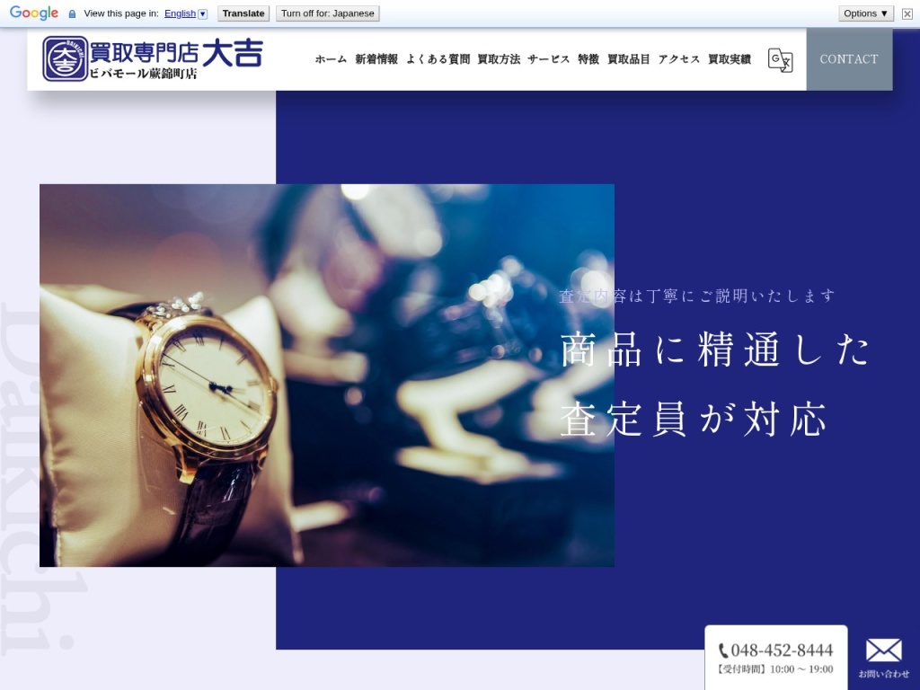 買取専門店大吉ビバモール蕨錦町店 埼玉県蕨市錦町1丁目12−1 ビバモール蕨 2階 査定無料・手数料なし 当日キャンセル可能 専門鑑定士による高精度な査定、高価買取実績多数