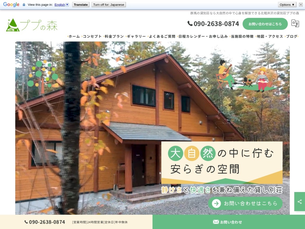 | 貸別荘ププの森 | 広大な敷地内に位置し、温泉付き。四季折々の自然を楽しめる | 全棟ペット可、ドッグラン完備 |
